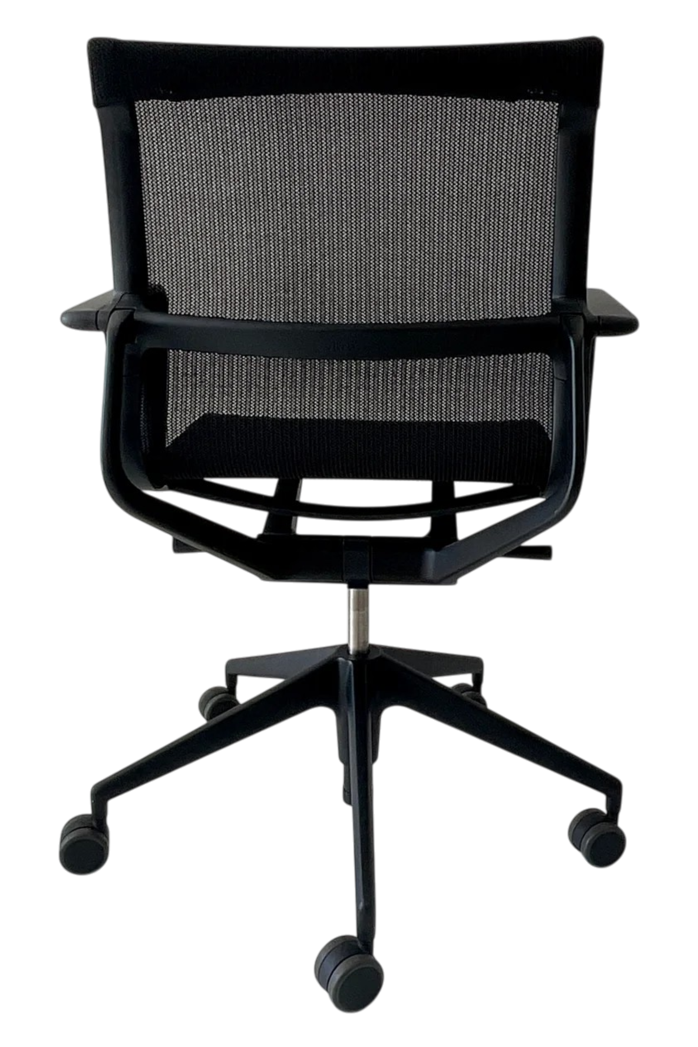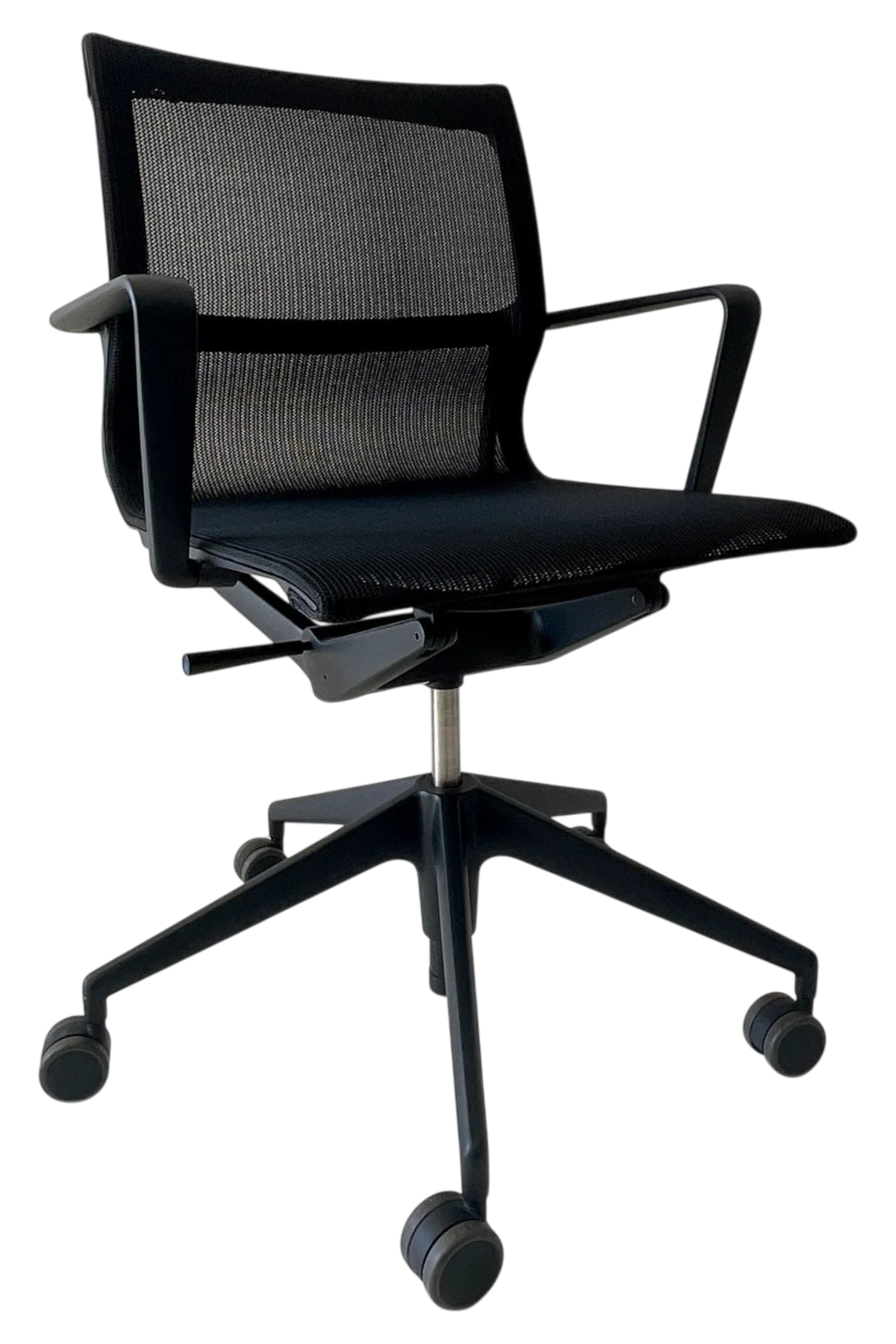 De zwarte uitvoering geeft de stoel een tijdloze en professionele uitstraling die perfect past in moderne kantooromgevingen. Het flexibele frame en de dynamische ondersteuning zorgen voor een comfortabele zitervaring gedurende de hele werkdag.